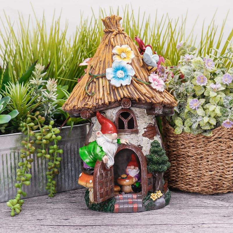 EAGLEGIFTS Garden House Village and Gnome Resin Figurine with Solar Light