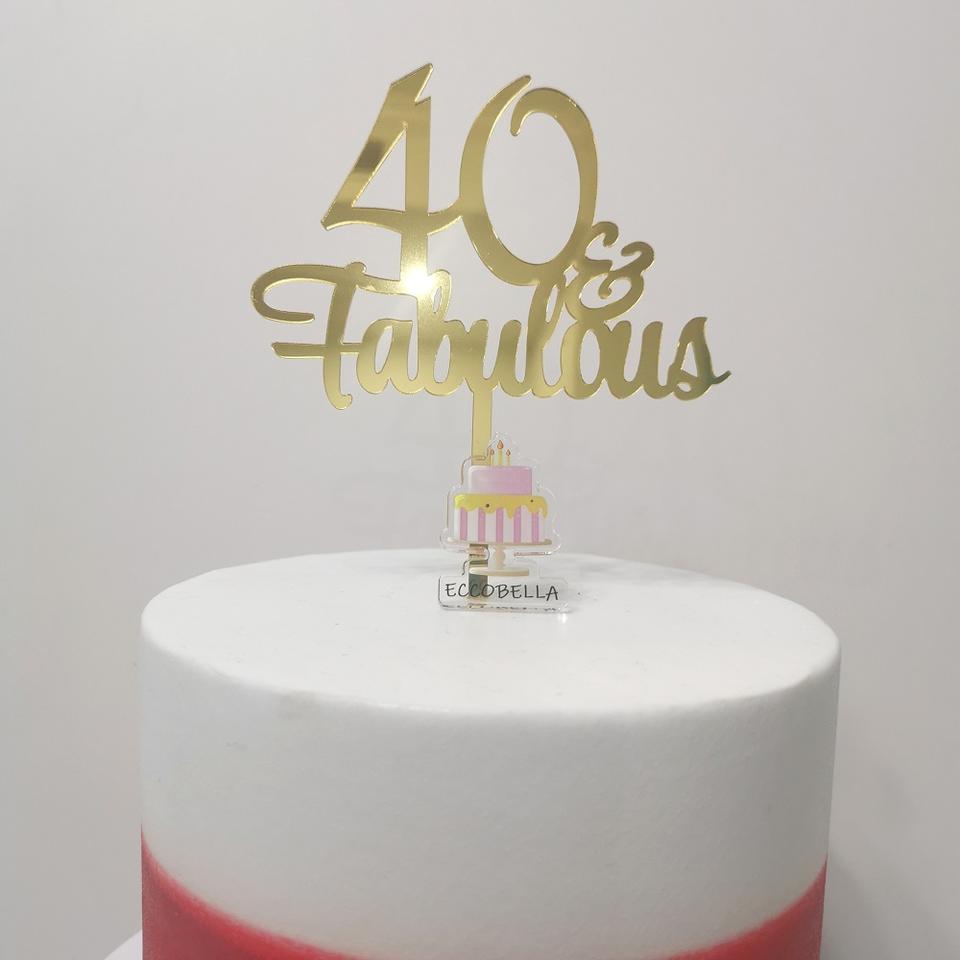 ECCOBELLA Fabulous Mirror Gold Elegant Acrylic Cake Topper Reusable Happy Birthday 11x14cm UV Printed Cake Decorations