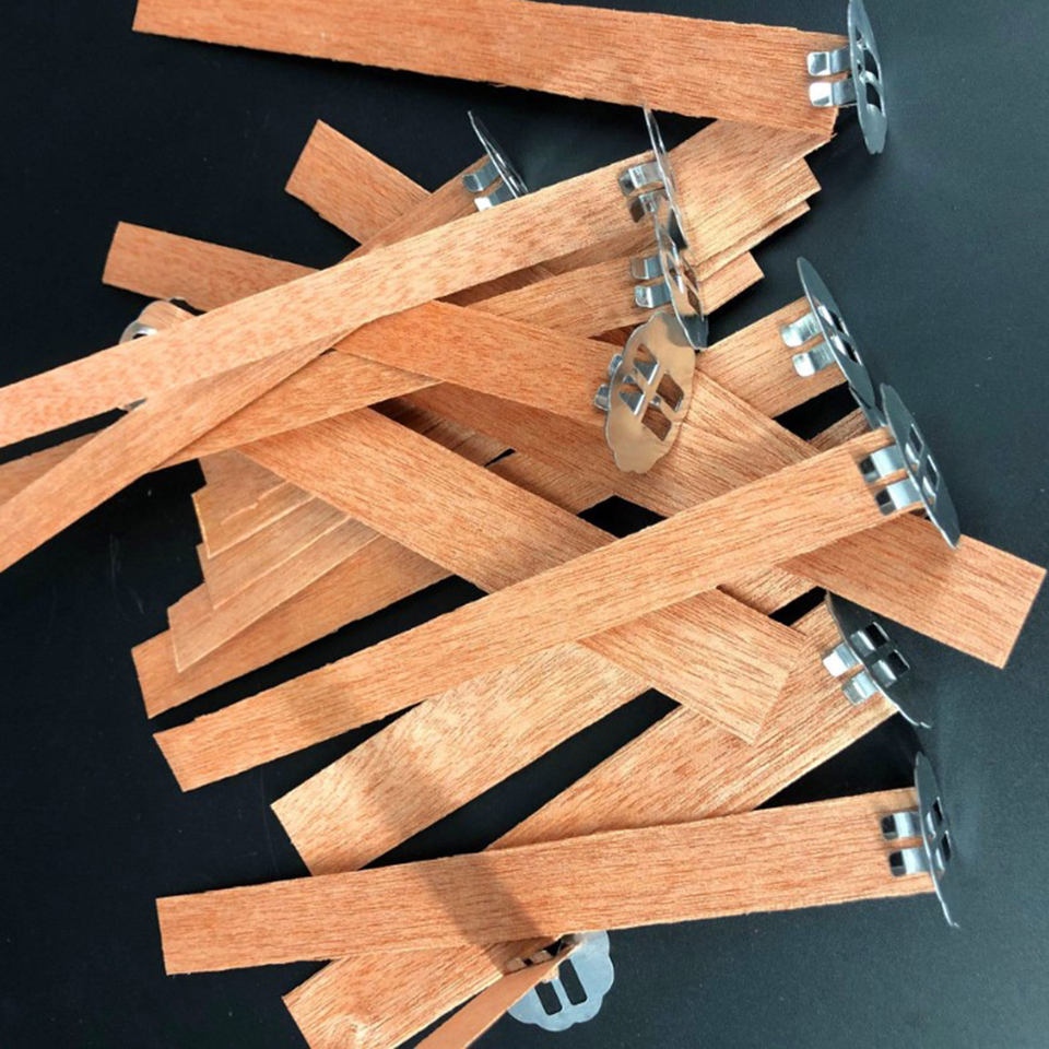 Eco-friendly In Legno Stoppino per il Make Profumo Di Soia/Paraffina/Cocco/Ape Candela di Cera con Linguetta di Metallo Formato Su Misura
