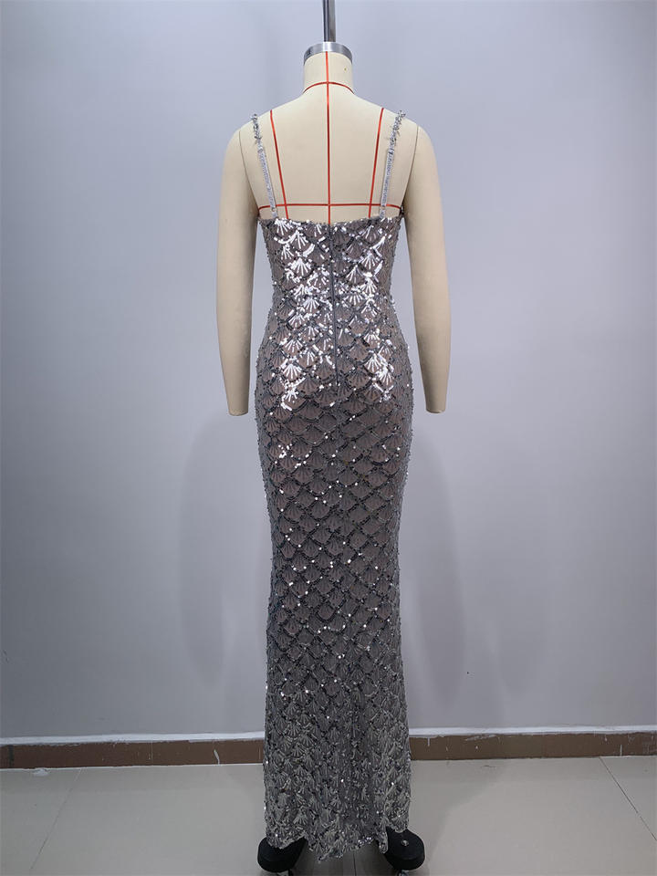 ED2690 Kimshein Trendy Women Clothes Silver Sequin Evening Dress Sequin Party Dress Shiny Evening Dresses