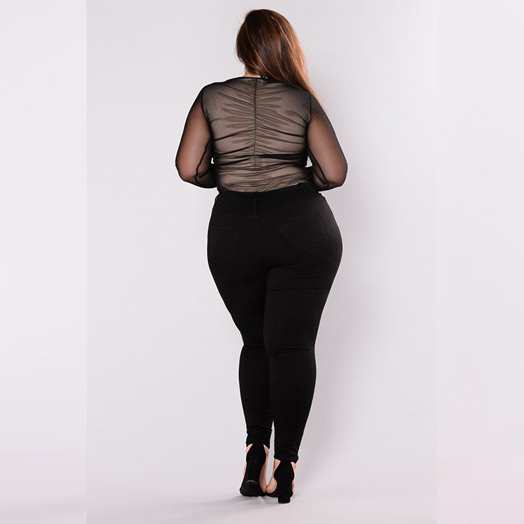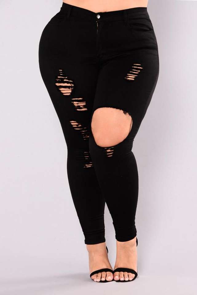 EDGE DENIM Jeans Neri Strappati con Elastico in Vita, Jeans Taglie Forti per Donne Formose
