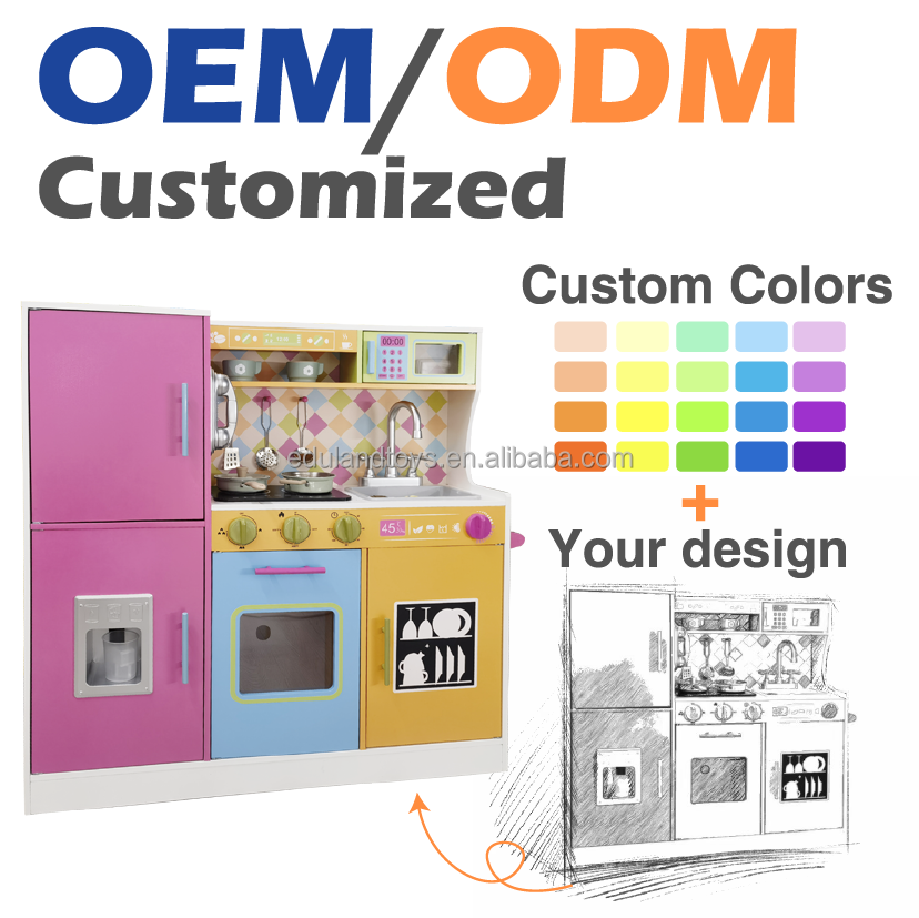 EDULAND Set cucina in legno naturale (AI765825546310), vernice a base d'acqua non tossica, EN71 & ASTM, erogaz. acqua, MOQ 500 set