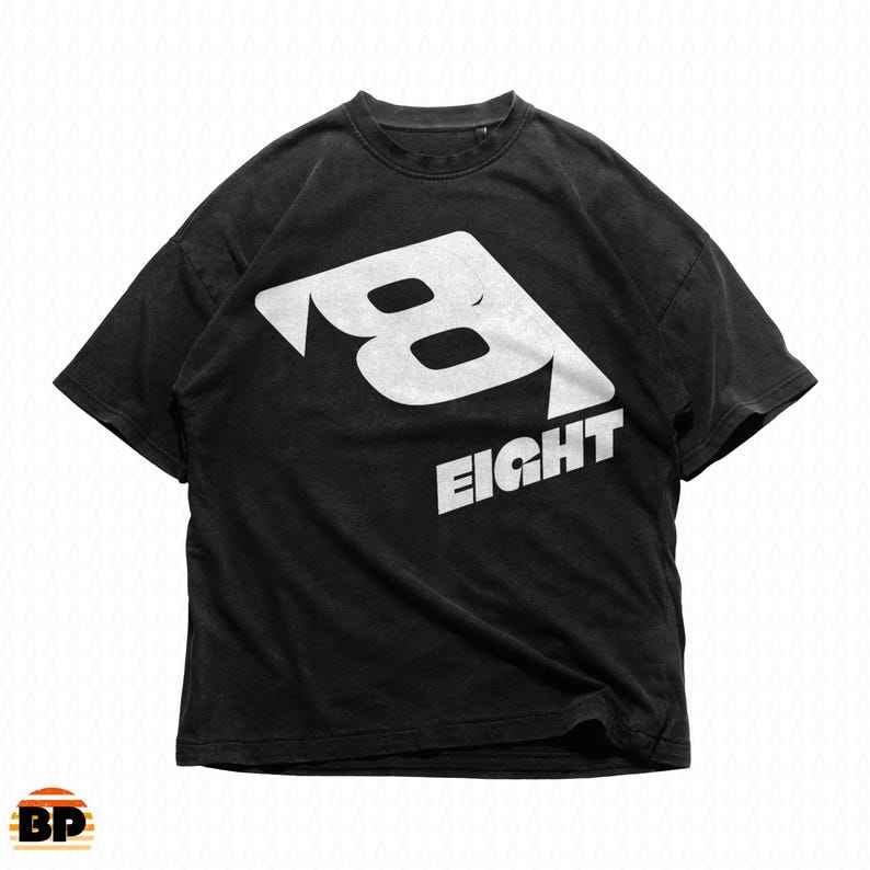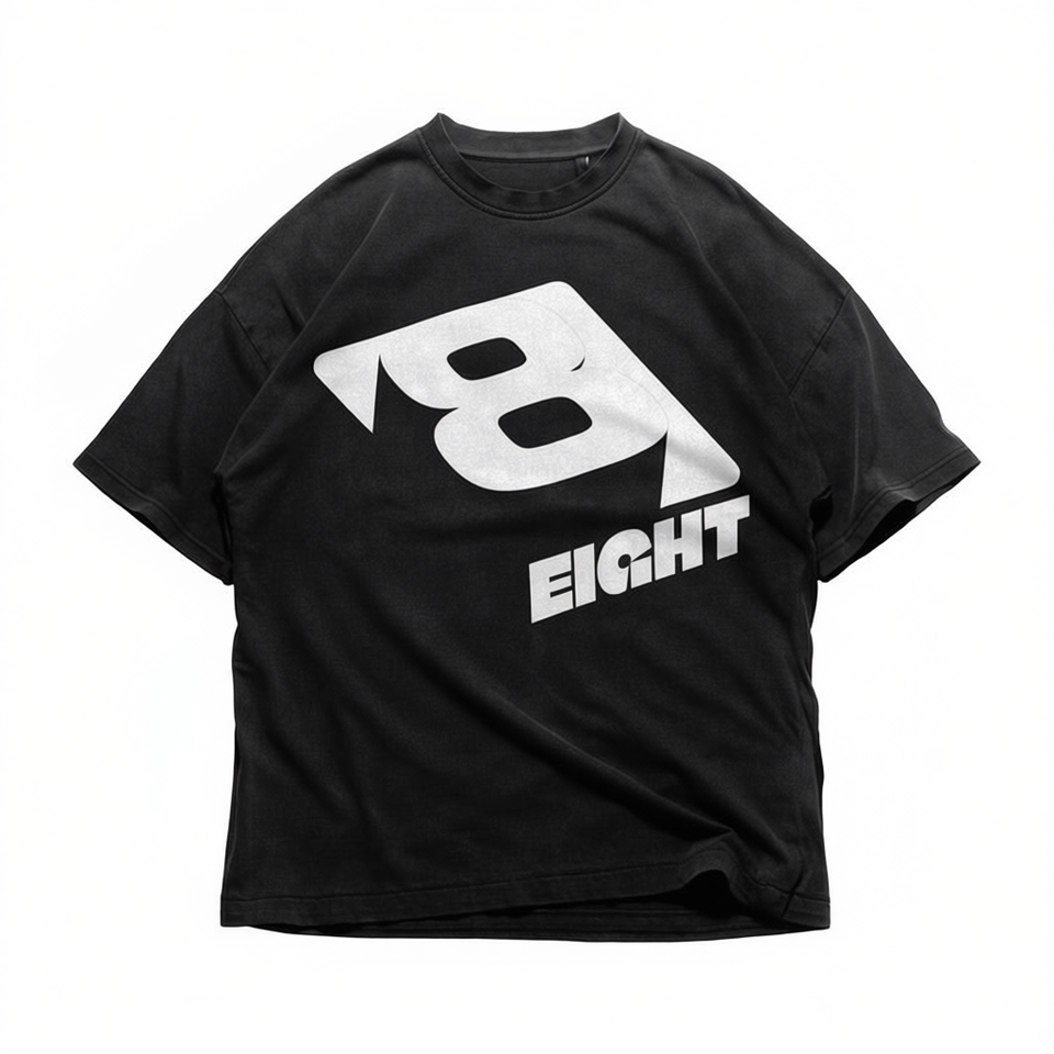 T-shirt Grafica Oversize con Numero 8 in 3D, Stile Retrò Anni '90, Tipografia Audace, per Donna e Uomo
