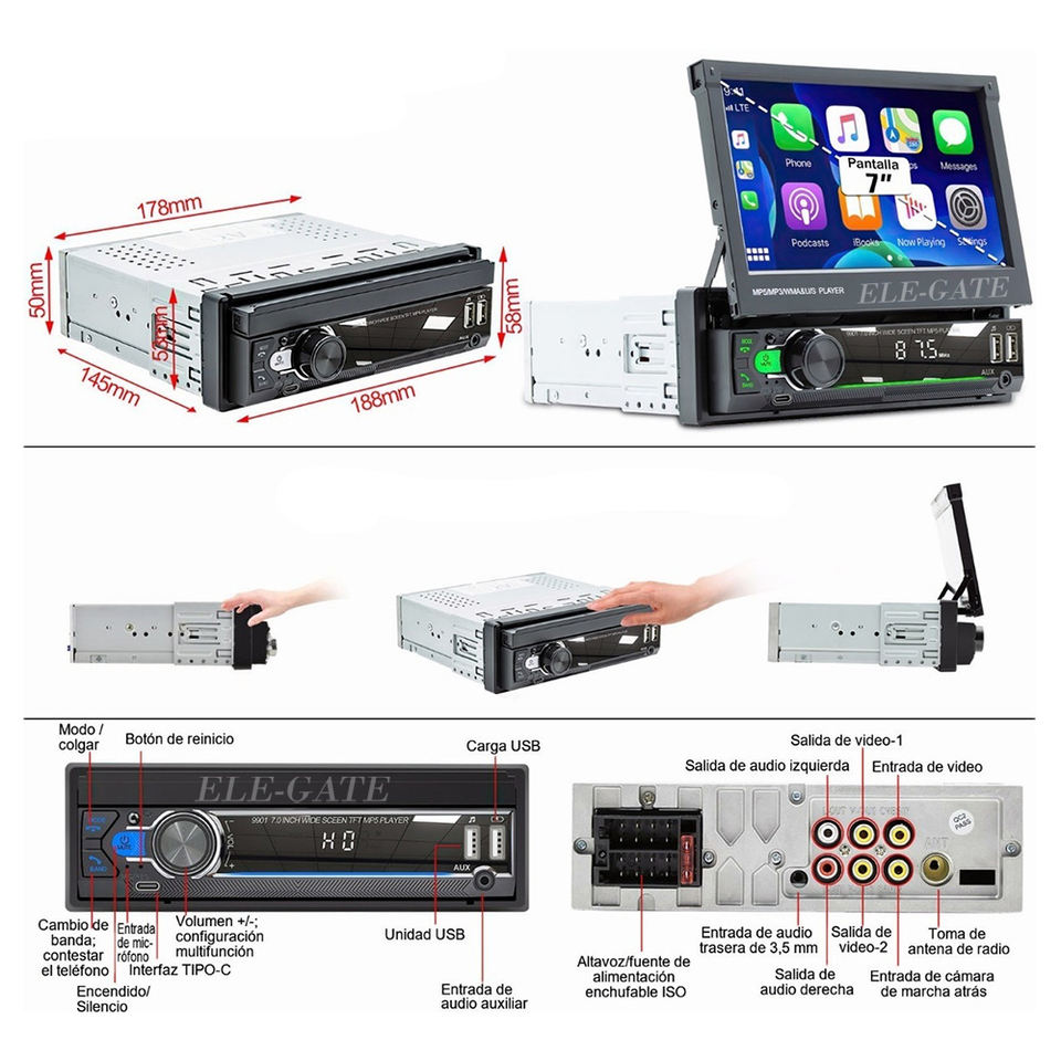 ELE-GATE Autoradio 1DIN con Schermo Touch HD Retrattile da 7 Pollici, GPS Android con Supporto Multilingue, Modello FM.17