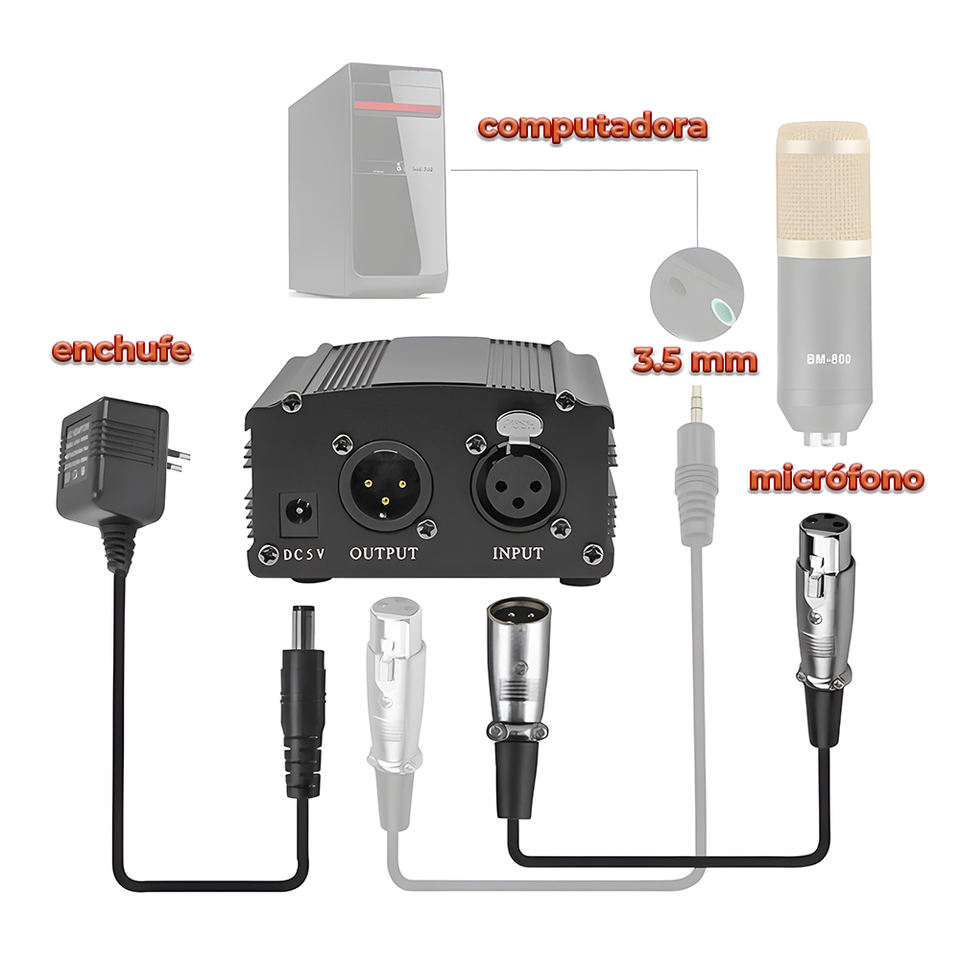 ELEGATE AV.SZ.CH.203 Alimentatore Phantom 48V DC per Registrazione in Studio e Microfoni a Condensatore per Computer
