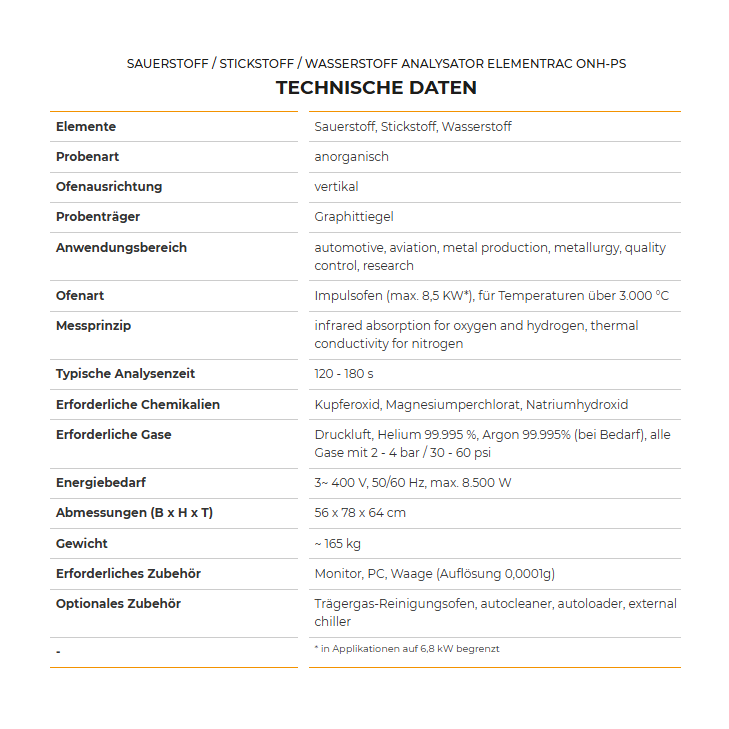 ELEMENTRAC ONH-ps Gas Analyzer for Oxygen Nitrogen Hydrogen
