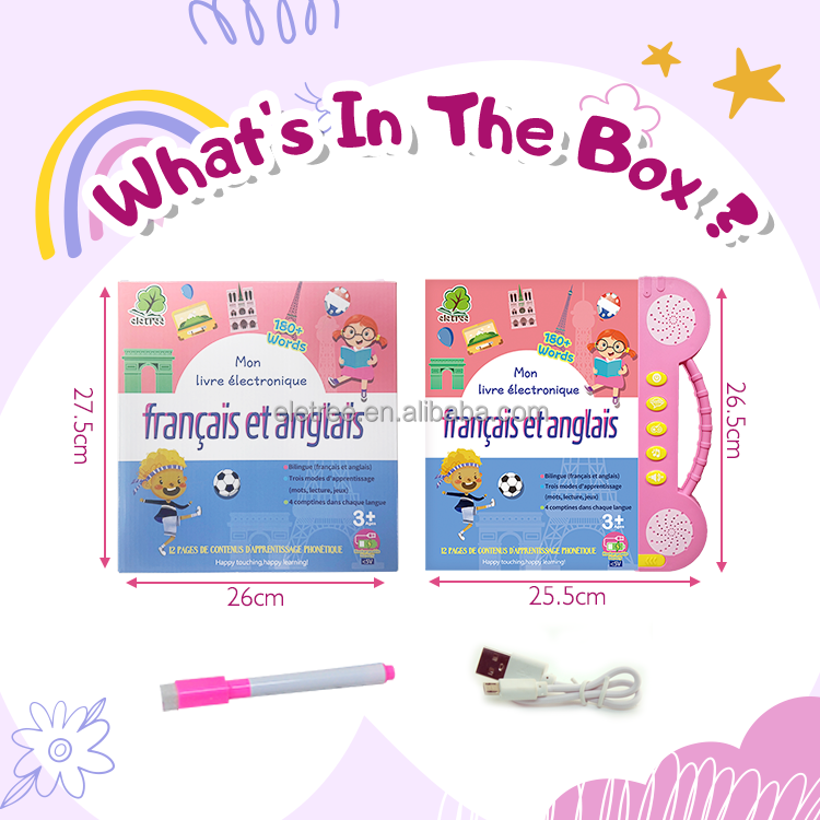 ELETREE New Kids French English Bilingual ABC Words Learning E-book Interactive Rechargeable Talking Sound Book