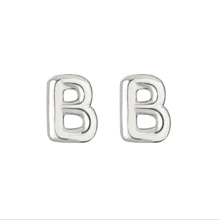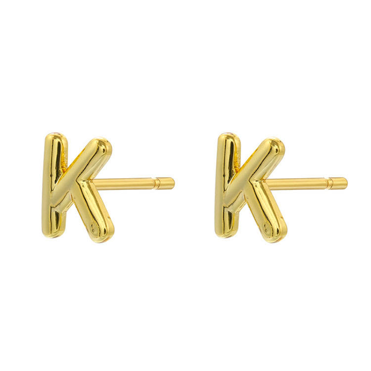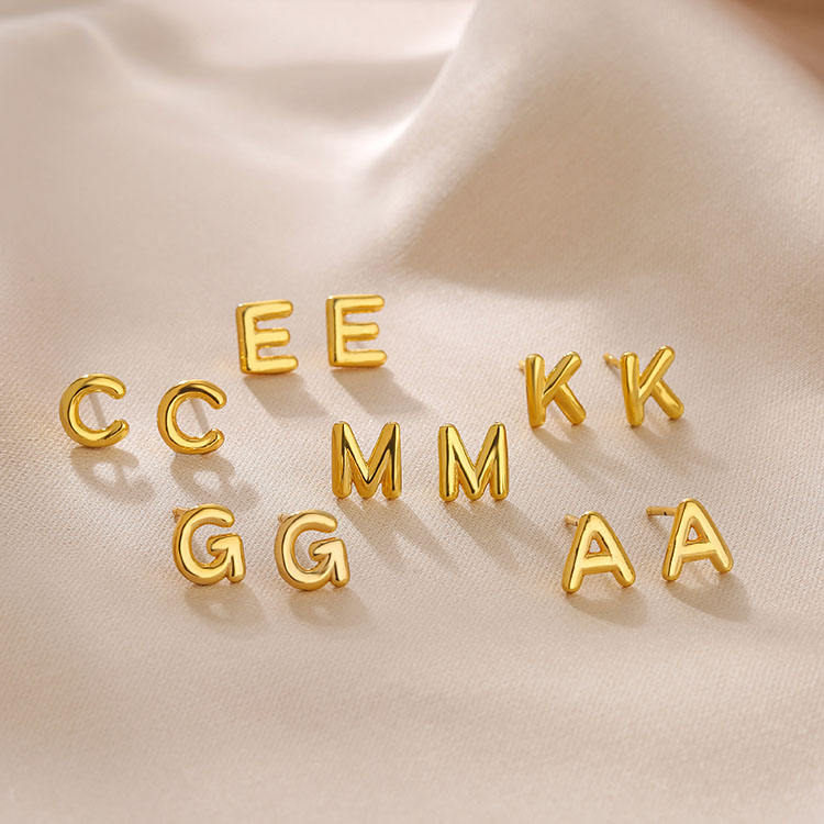 EM1473 Mini Minimalist Tiny Small LIttle 18K Gold Plated Bubble Puffy Alphabet Initial Letter Stud Earring for Women Girls