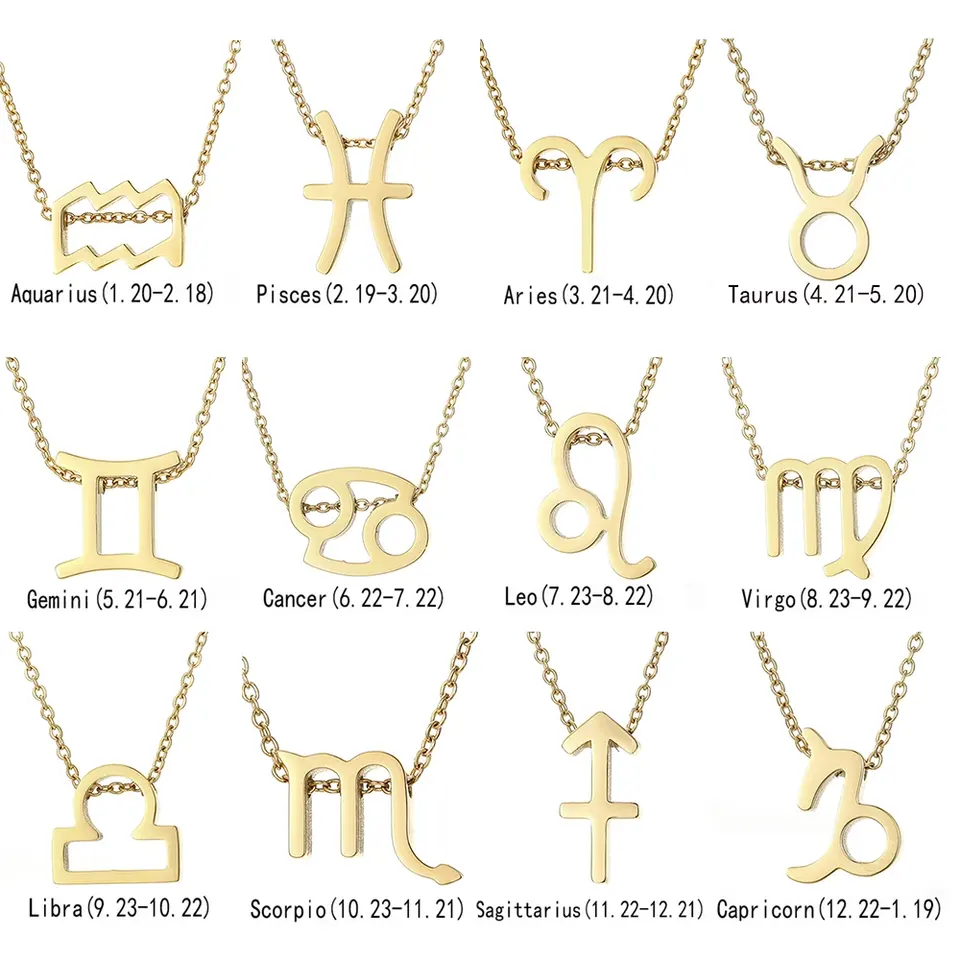 EManco New Men Women 12 Horoscope Zodiac Sign Pendant Necklace Aries 12 Constellations Necklace Fashion Gift Dropshipping