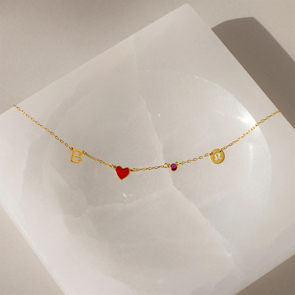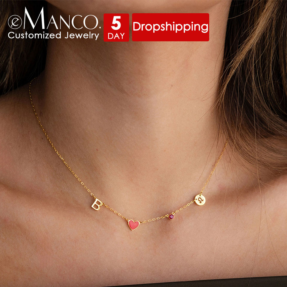 Collana EManco con Cuore Rosso Rosa Personalizzabile, Lettera Iniziale e Pietra Portafortuna della Costellazione, Placcata in Oro 14K/Argento per Dropshipping