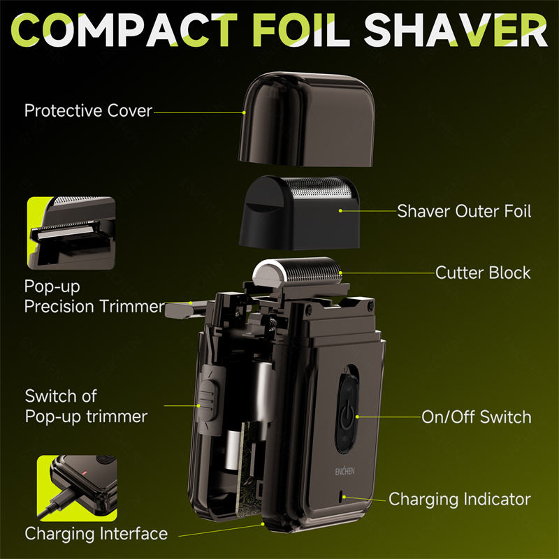 Rasoio Elettrico a Lamina ENCHEN Mini-shave Ricaricabile per Barba da Uomo, Macchina Portatile per il Viso