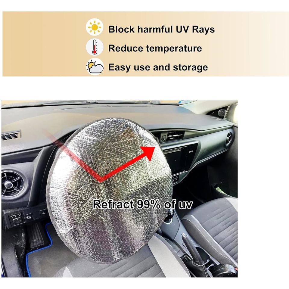 ENERFERO BMW Polyester Universal Car Steering Wheel Sun Shade Foldable Circular Sunshield Prevents Overheating Wear Model 024882