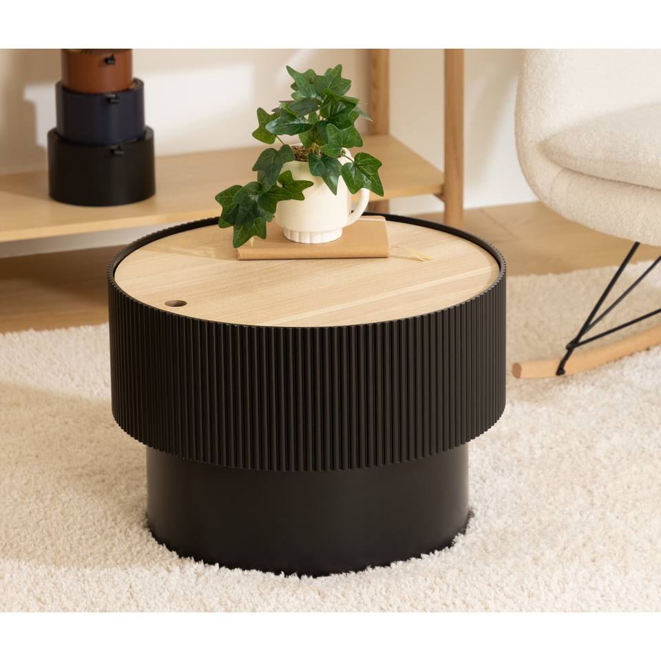 ENOLA CONTAINER TABLE MINIMALIST WOOD & METAL 55X38 CM BLACK and NATURAL