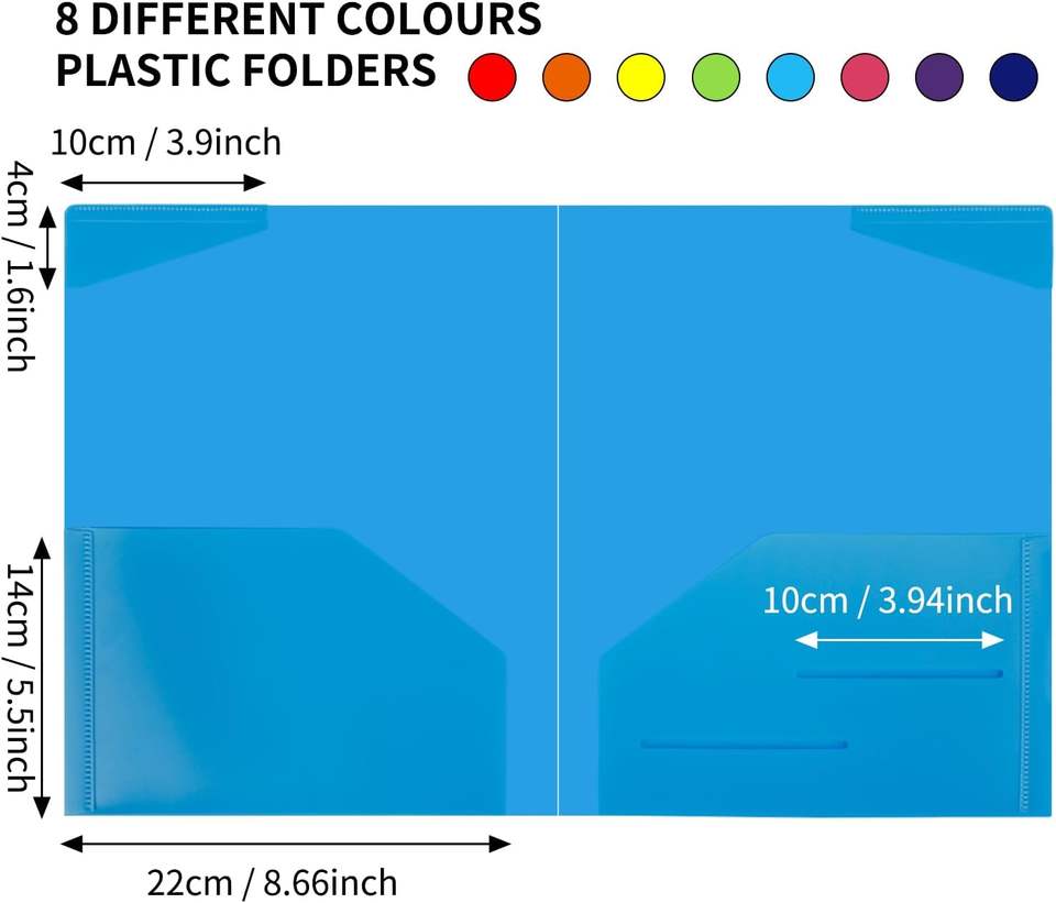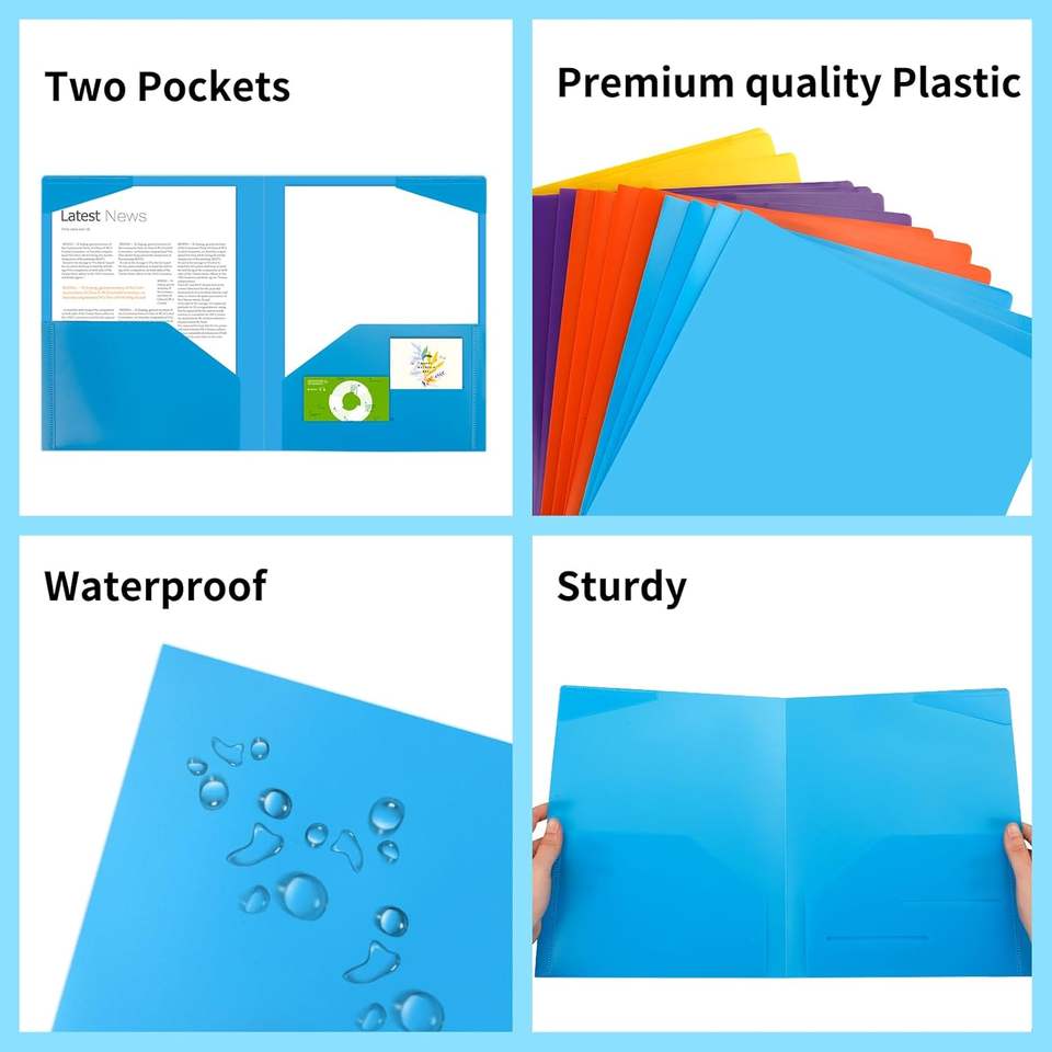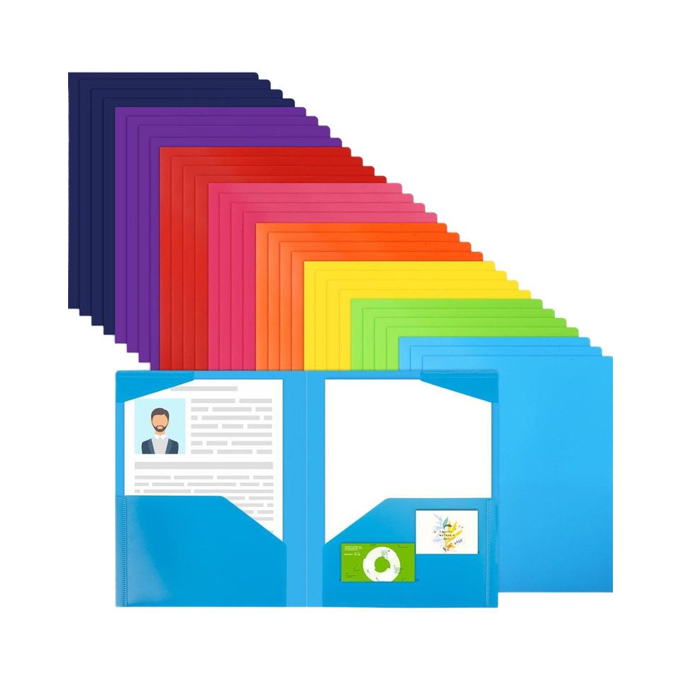 EOOUT 32pcs PP Folders with Pockets Heavy Duty 4-Pocket Office School Use Letter Size 8 Assorted Colors