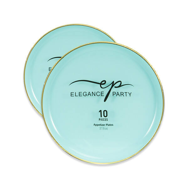 EP Edge 10PK 7.5\" Plastic Dinner Plate Mint+Gold 12pcs/carton for Camping