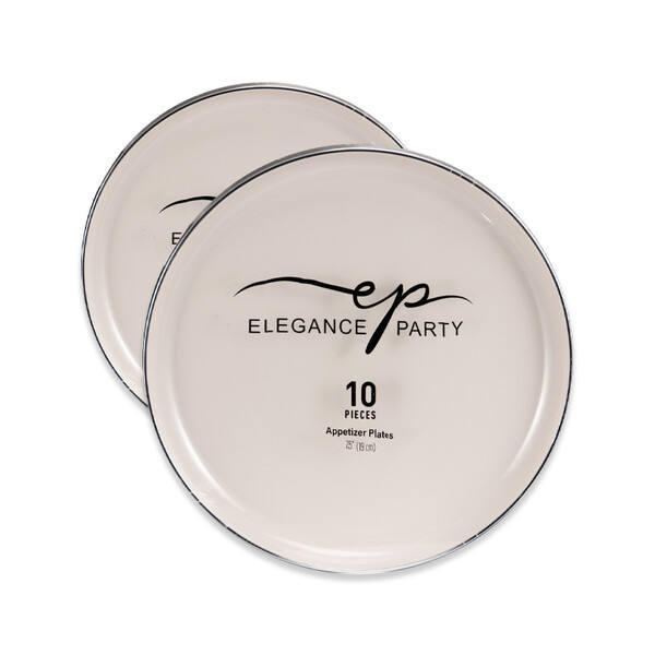 EP Edge Modern 10PK 7.5" Plastic Dinner Plate Linen+Silver 12pcs/Box for Camping