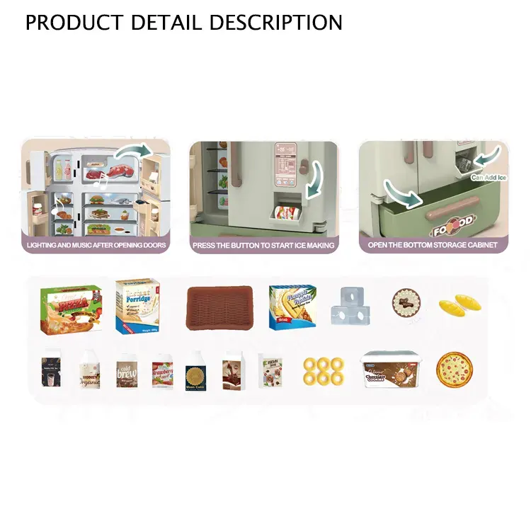 36pcs per carton for Battery operated mini fridge toy with kitchen set toy with light and sound