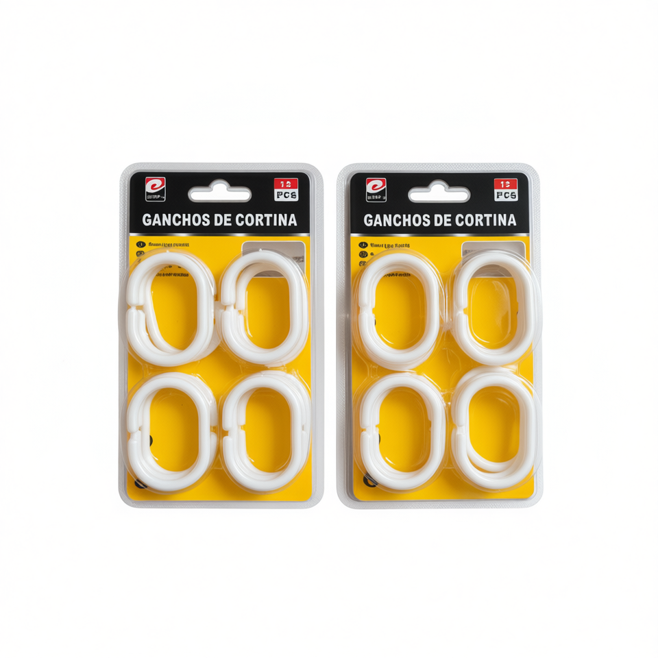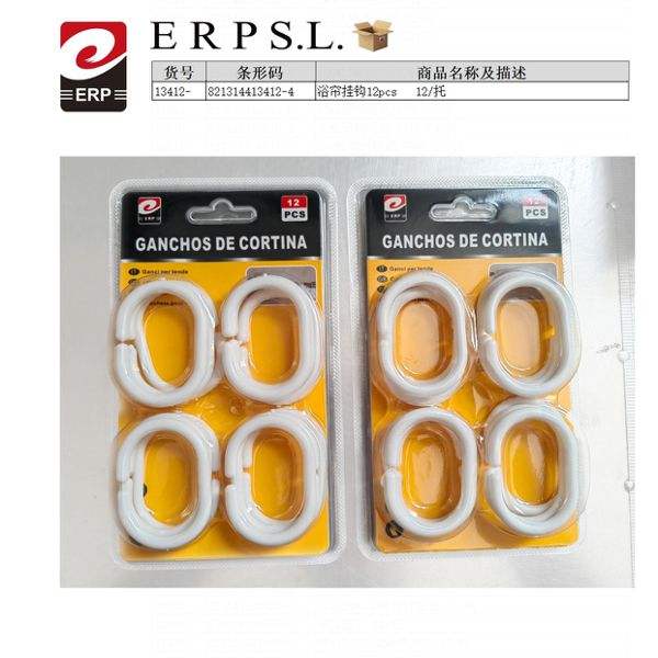 ERPSL Curtain Hooks 12 Pcs White Plastic Shower Curtain Rings for Bathroom Use
