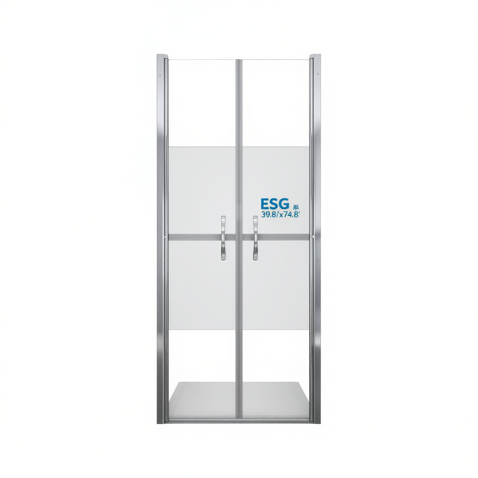 ESG Half Frosted Shower Door 39.8"x74.8" Sliding With Frame Tempered Glass