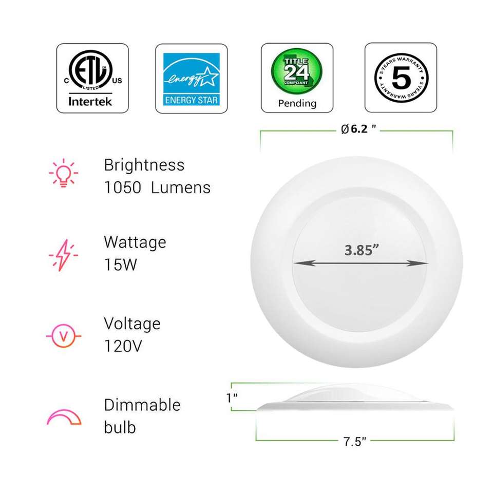 Faretto LED da Soffitto ETL 6 Pollici Dimmerabile 15W in Alluminio Design Liscio Ultra Sottile