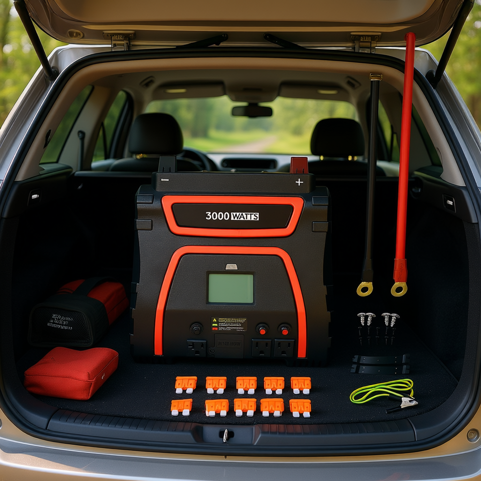 Inverter di Potenza 3000 Watt Onda Sinusoidale Modificata da 12V a 115V AC per Uso di Emergenza in Auto con Display LED
