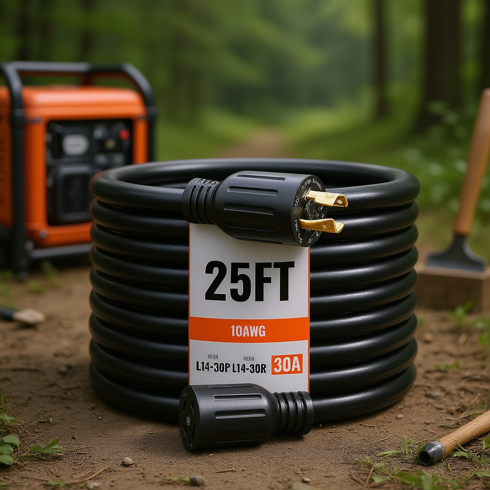 Generator Power Extension Cord 25 Ft 10 AWG 30A NEMA L14-30P L14-30R Twist Lock Connector