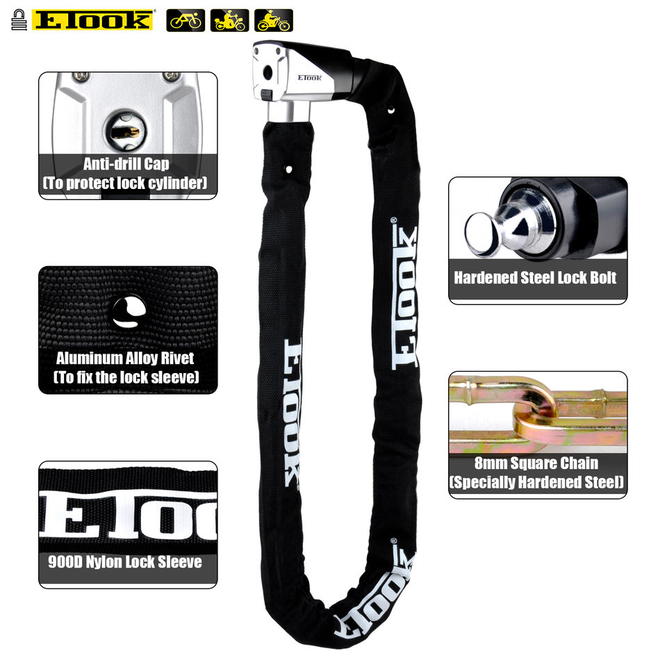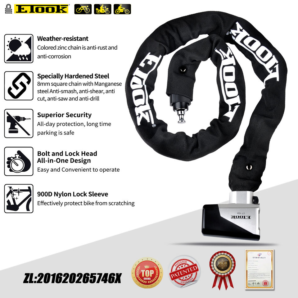 Catena antifurto ETOOK OEM ad alta sicurezza per biciclette e scooter, resistente e robusta.
