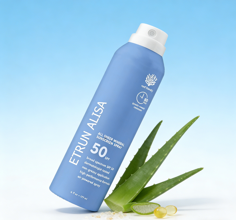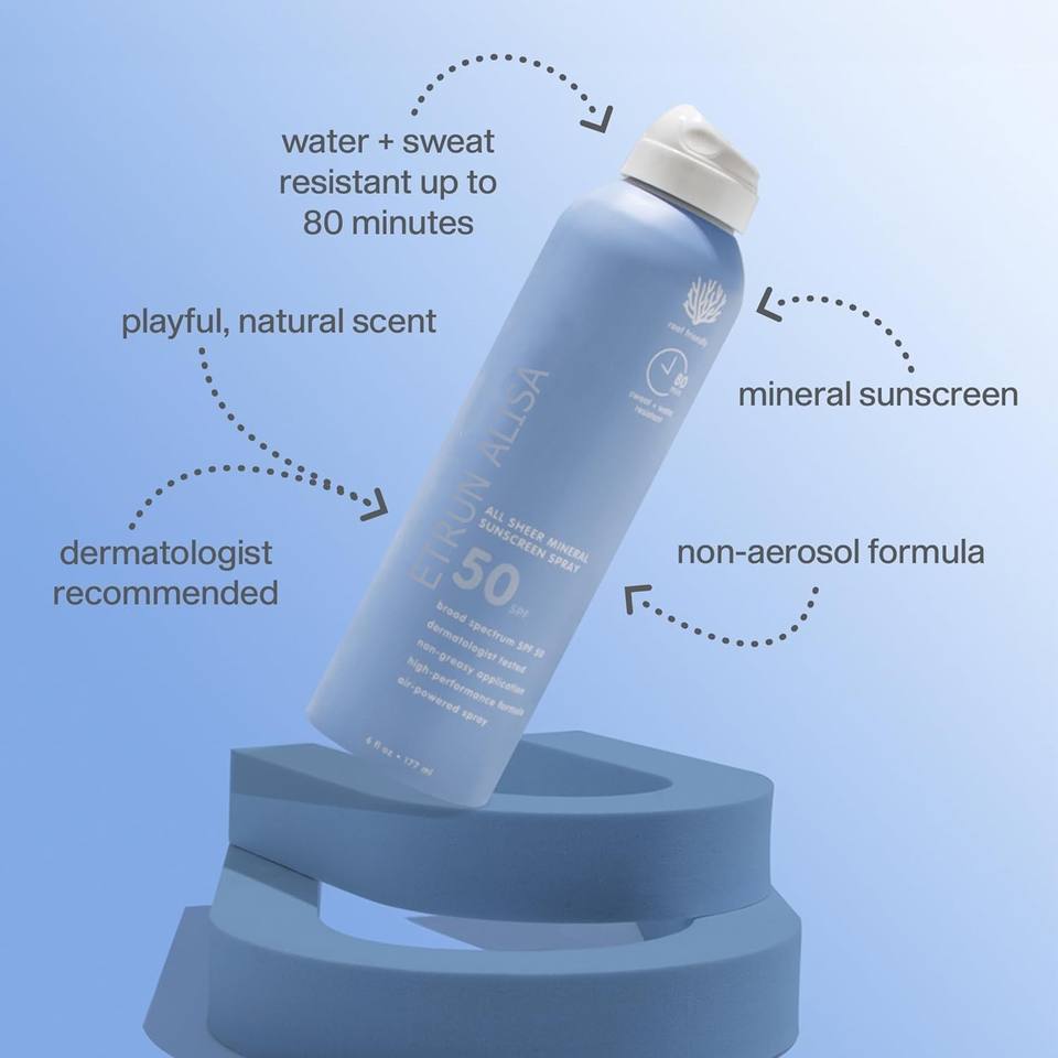 ETRUN ALISA SPF 50+ Mineral Sunscreen Spray, All Sheer, Natural Water Resistant Face Body Sun Protection, Vegan & Reef Safe