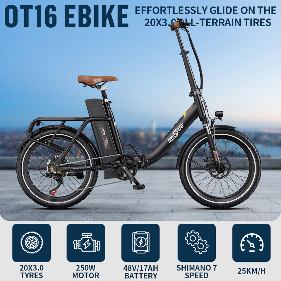 Bicicletta Elettrica Pieghevole Ibrida EU ONESPORT OT16 da Neve, 250W 48V con Batteria al Litio, Pneumatici Fat, per Città e Montagna