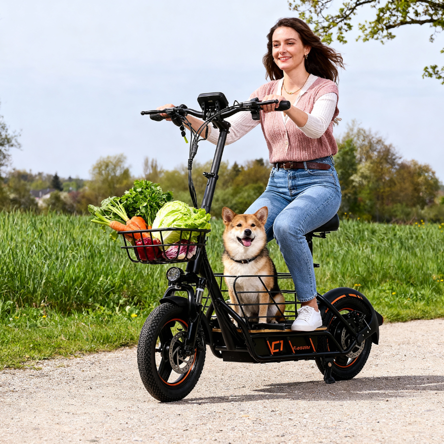 EU US Stock Electric Commuter Scooter with Dual Baskets & Seat 14 Inch Tire Fast Delivery Adult Electric Scooter