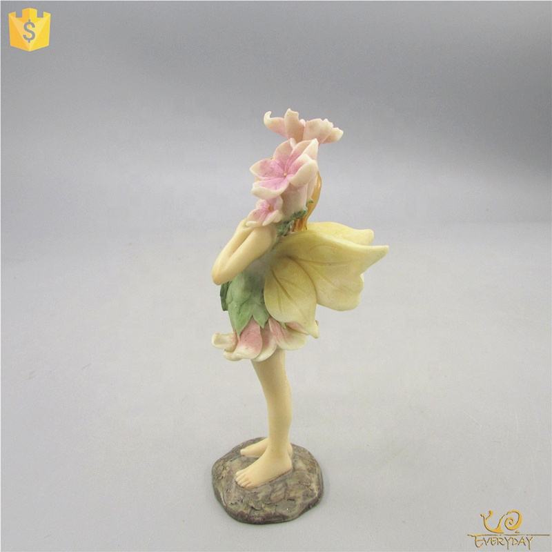 EV13125A decorazione del giardino all'ingrosso bella ragazza fata in resina con figurine di fiori statua fata in miniatura