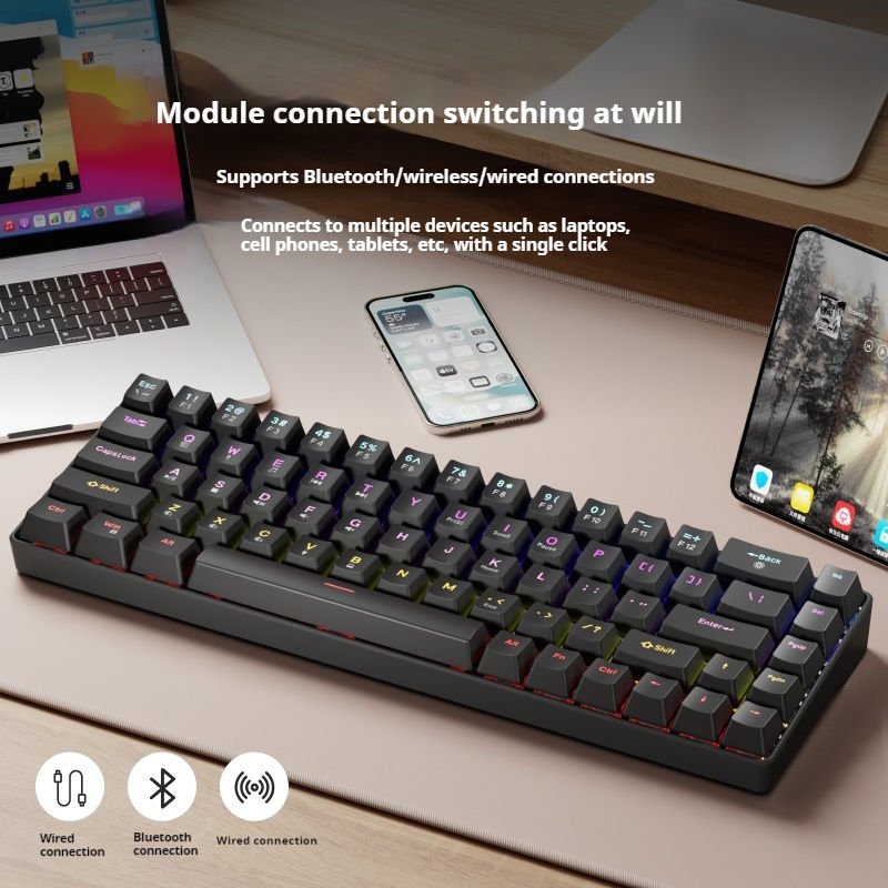 EWEADN Tastiera meccanica G68 68 tasti compatta Tri-mode (Bluetooth/USB/Wireless) per gaming RGB retroilluminata
