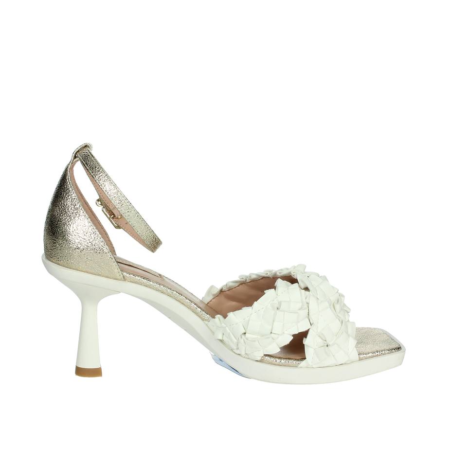EX074 White/Gold Platform Sandals with Lace-Up Closure Fashionable and Sexy Square and Pointed Toe Design SA4109