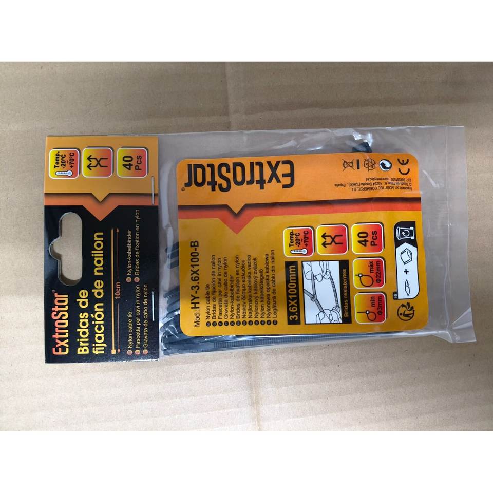 EXTRASTAR PA66 Eco-Friendly Nylon 66 Industrial Cable Ties 3.6X100mm Self-Locking Black 40PCS
