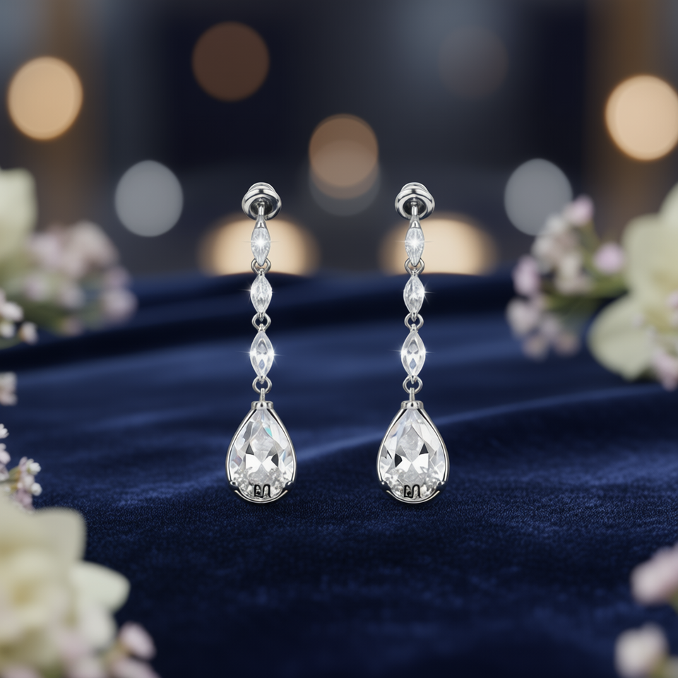 Orecchini a goccia in oro bianco con cristalli, montatura a castone, in argento 925 placcato rodio, gioielli classici da donna per matrimonio