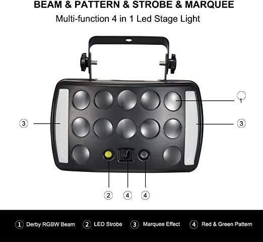 Eagou Diary Disco Lights Sound-Activated Party with Remote Control DMX 512 Derby Light RGBW Stage Light