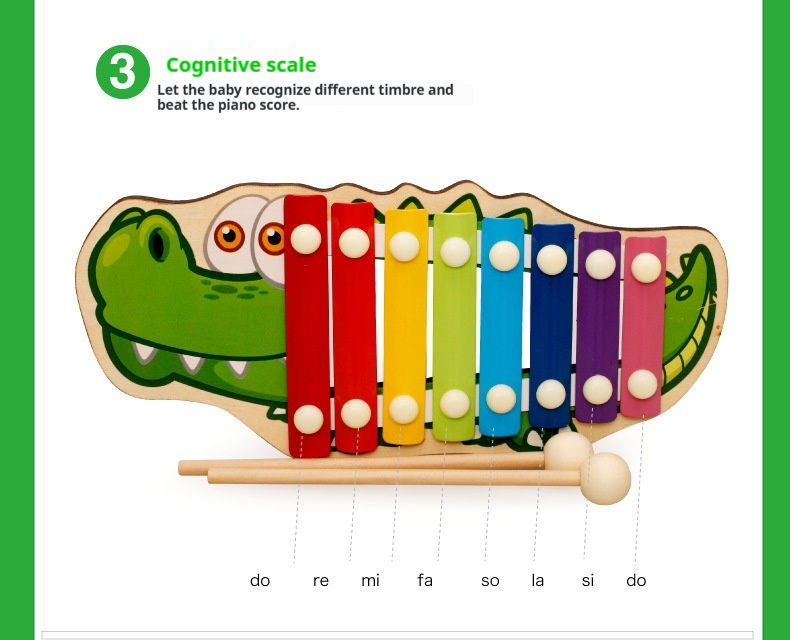 Strumento a percussione a mano per allenamento di musica antica per bambini di 1-3 anni, xilofono in legno a otto toni, giocattolo educativo per bambini