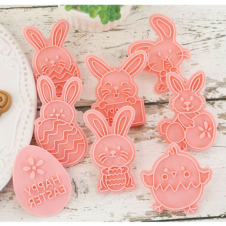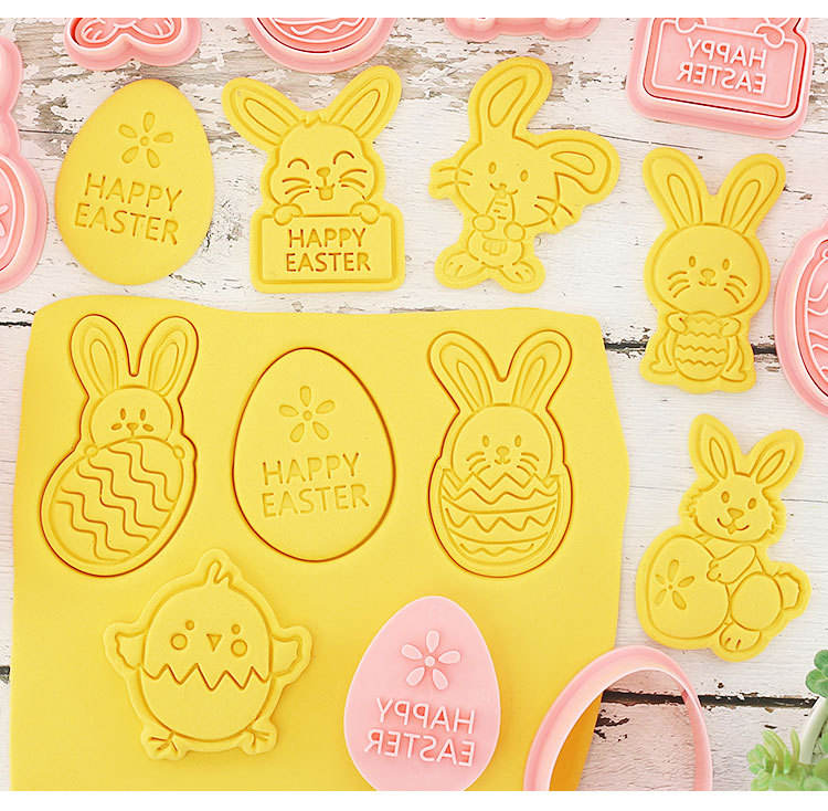 Set di stampini per biscotti Easter 3D Cartoon uovo coniglietto stampo biscotto per cottura fondente