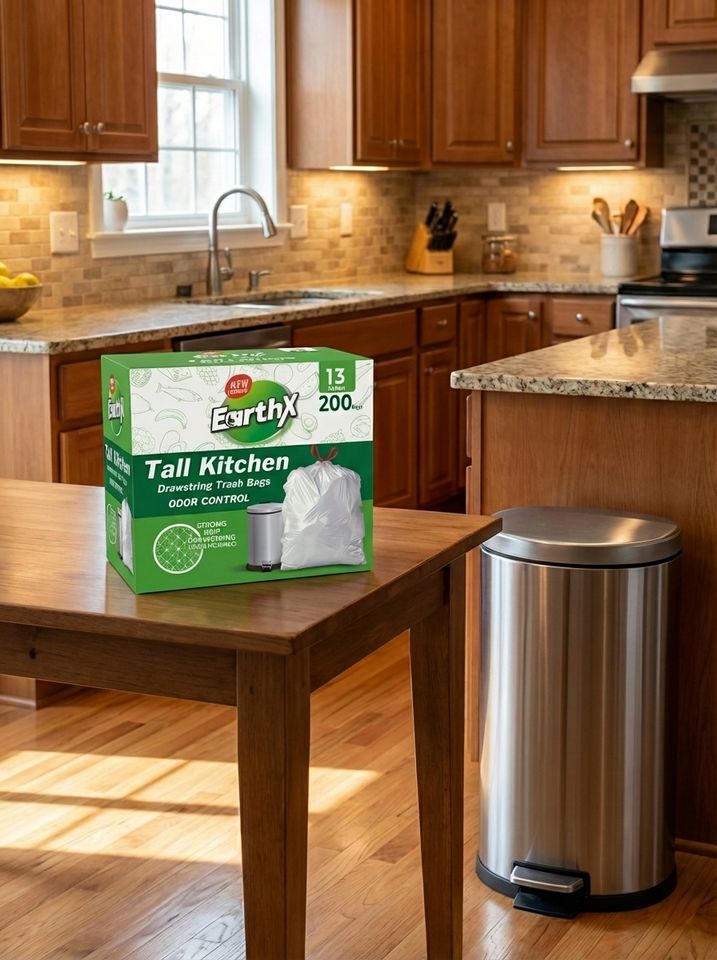 Sacchetto per Rifiuti Domestici EarthX da 13 Galloni con Chiusura a Cordoncino