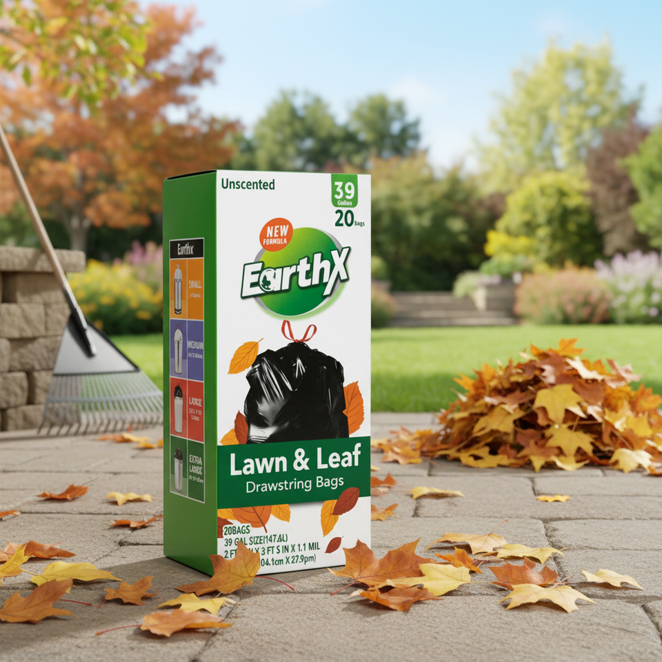 Sacchi con coulisse EarthX per prato e foglie, 39 galloni, 20 pezzi, senza profumo