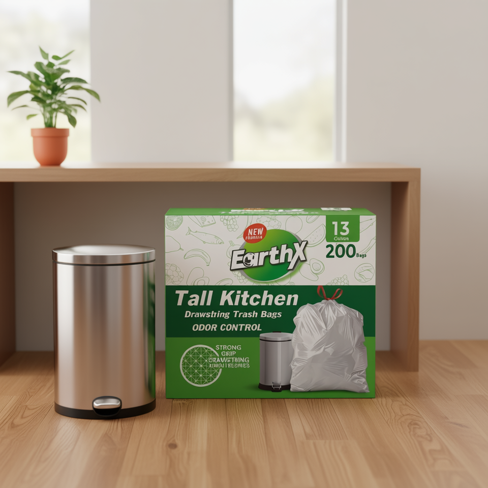 EarthX Tall Kitchen Drawstring Trash Bags 13 Gallon 200 Count Odor Control Food Waste