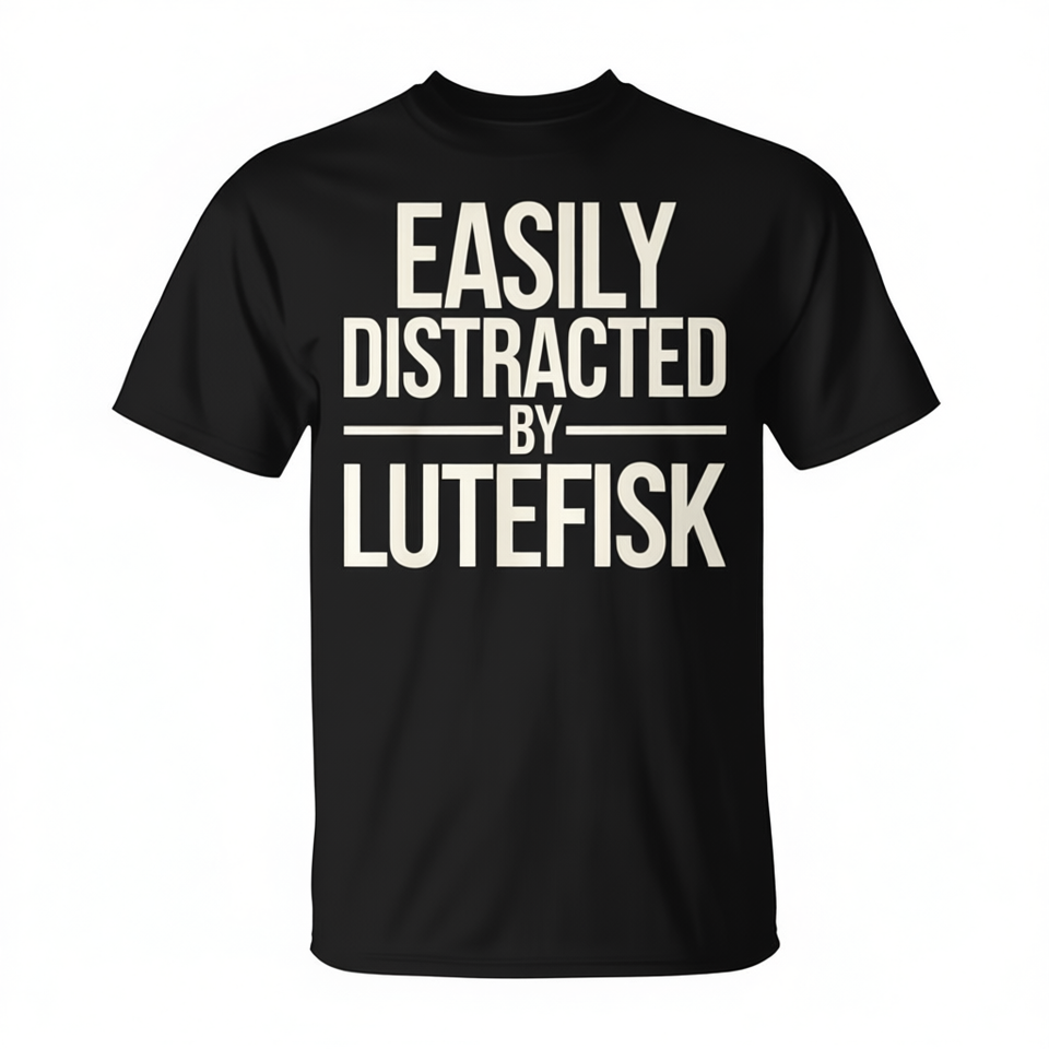 Facilmente distratto da Lutefisk T-shirt nera unisex per adulti taglia M