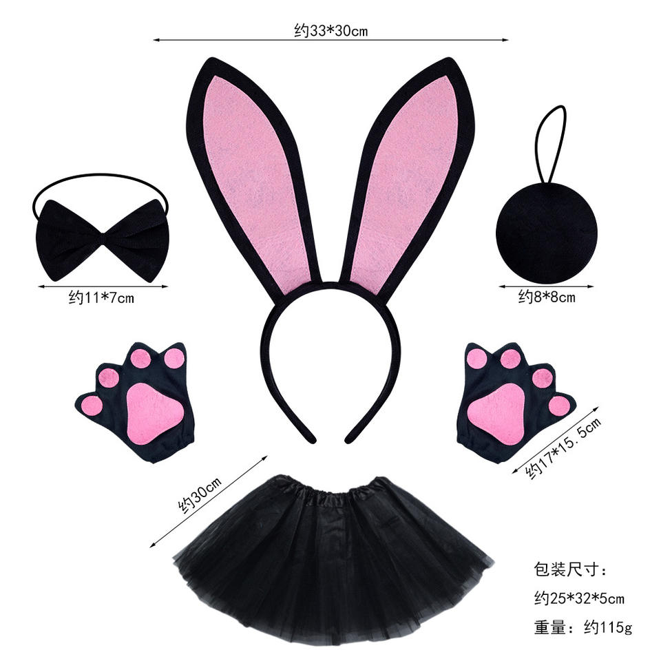 Easter coniglietto orecchie Set per bambini adulti carini pinza per capelli di coniglio bianco guanti gonna Tutu costumi da coniglietto di animali di Halloween