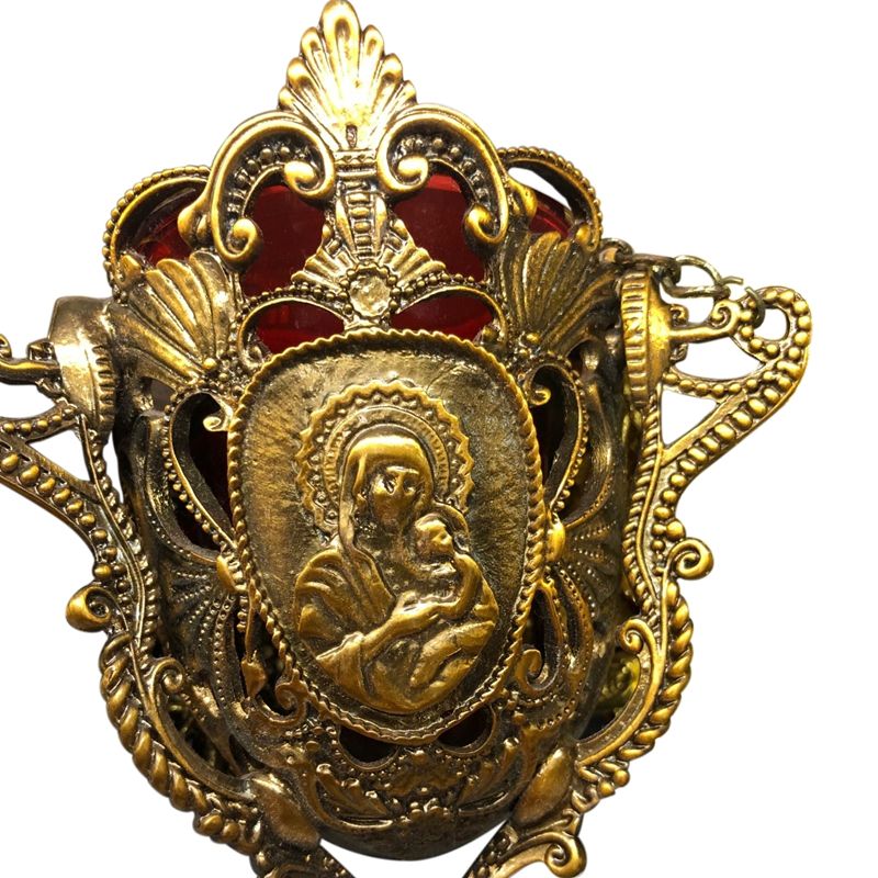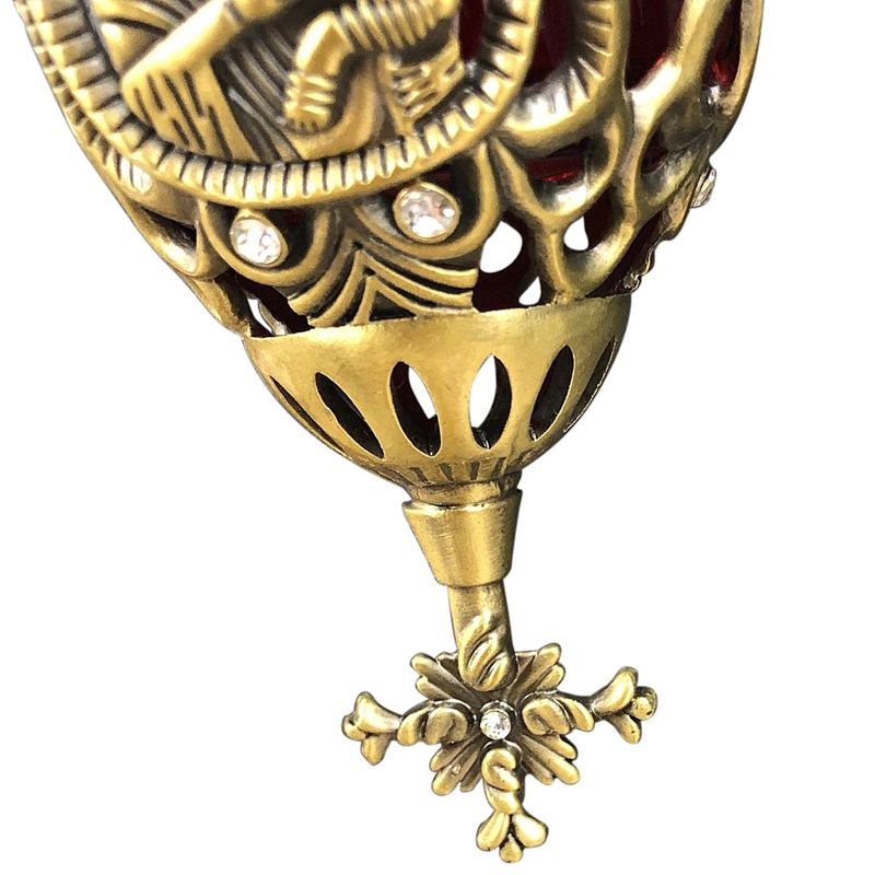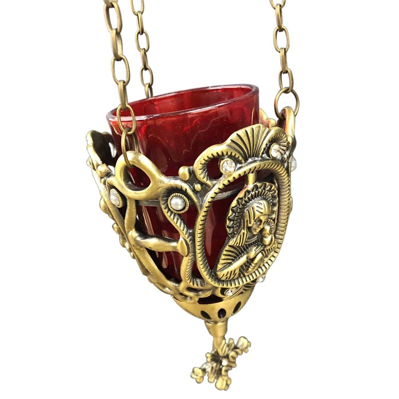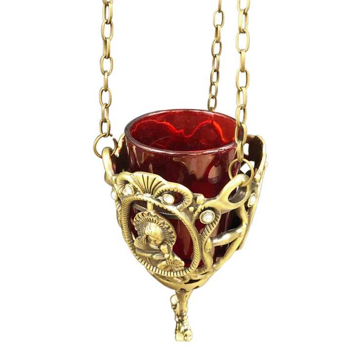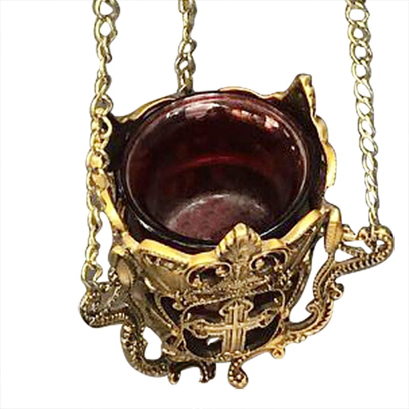 Lampada a Sospensione Cristiana Ortodossa Orientale, Coppa in Vetro Rosso e Oro con Catena Metallica per Chiesa Cattolica, Dedicazione, Vigilia, Olio, Feng Shui