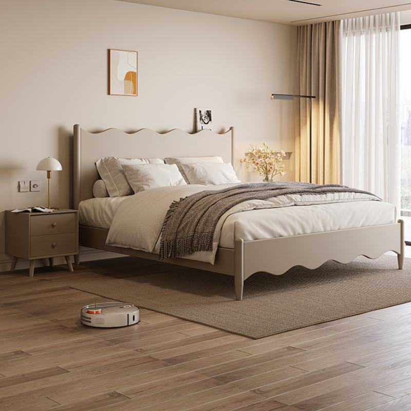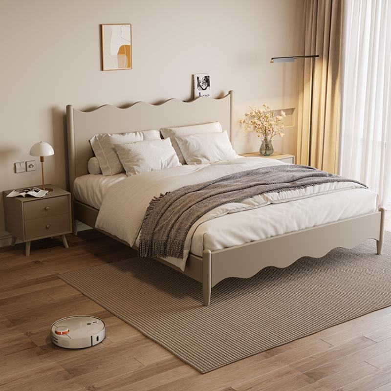 Letto a piattaforma in legno massello di quercia, facile da montare, con graziosa testiera a onda, disponibile nelle misure Queen e King, non richiede rete a molle, per camera da letto, stile minimalista.