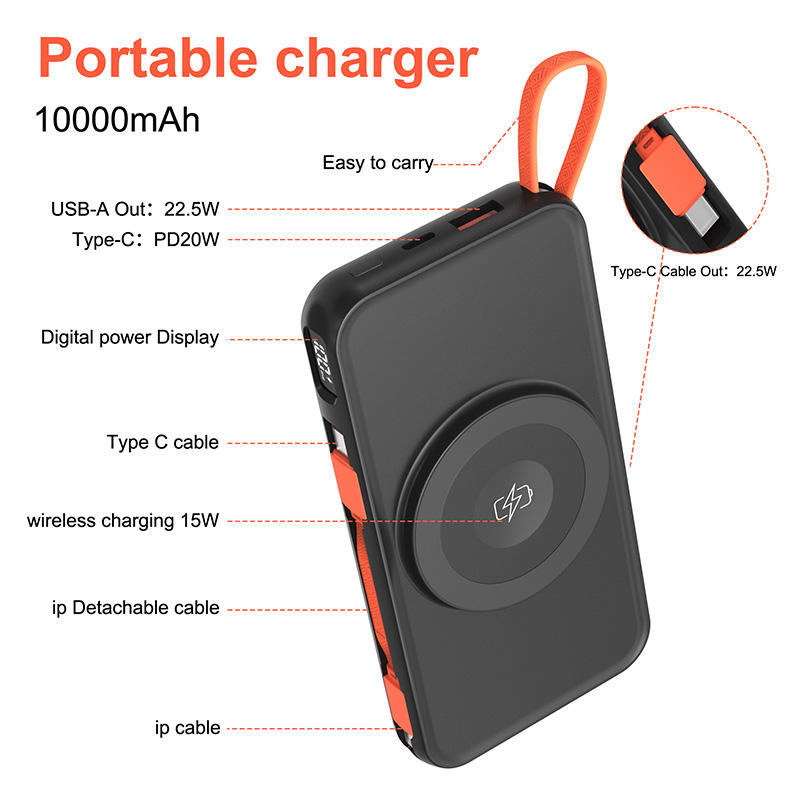 Nome del prodotto:Costruire in cavo banca di potere magnetico 10000mah