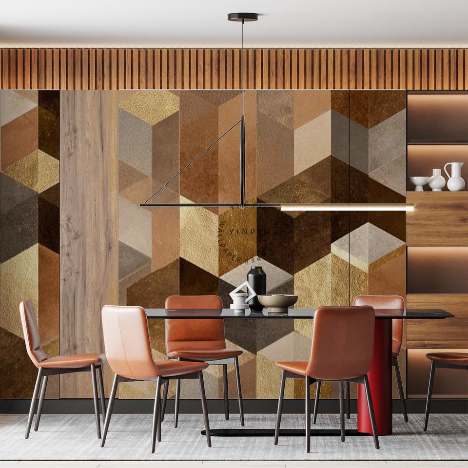 Carta da Parati Murale Geometrica Cubica Metallizzata Impermeabile Facile da Installare Fai-da-Te per Decorazione Pareti Domestiche