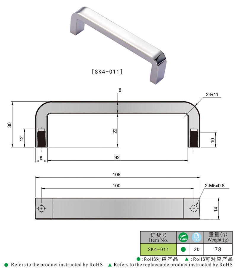 Maniglia a Arco in Lega di Zinco Facile da Installare - Design Moderno per Forni Industriali/Camere di Prova/Automazione (Montaggio Senza Attrezzi)