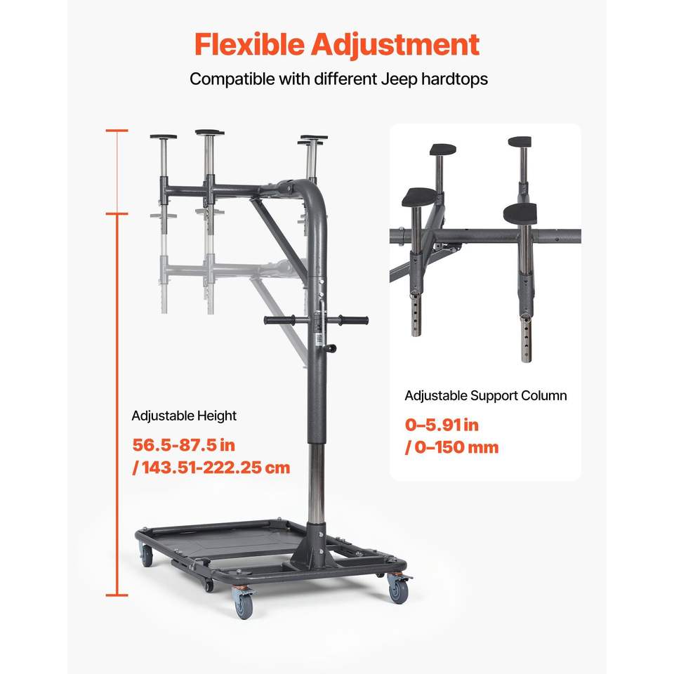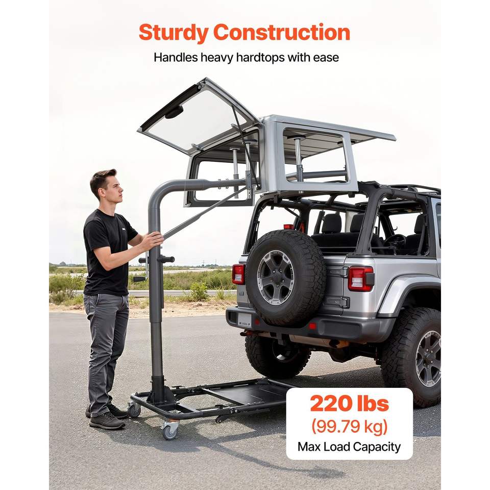 Sistema di Sollevamento Auto Pieghevole per Rimozione Hardtop Jeep, Facile Utilizzo Monoposto, Capacità 220 Libbre, Altezza Regolabile