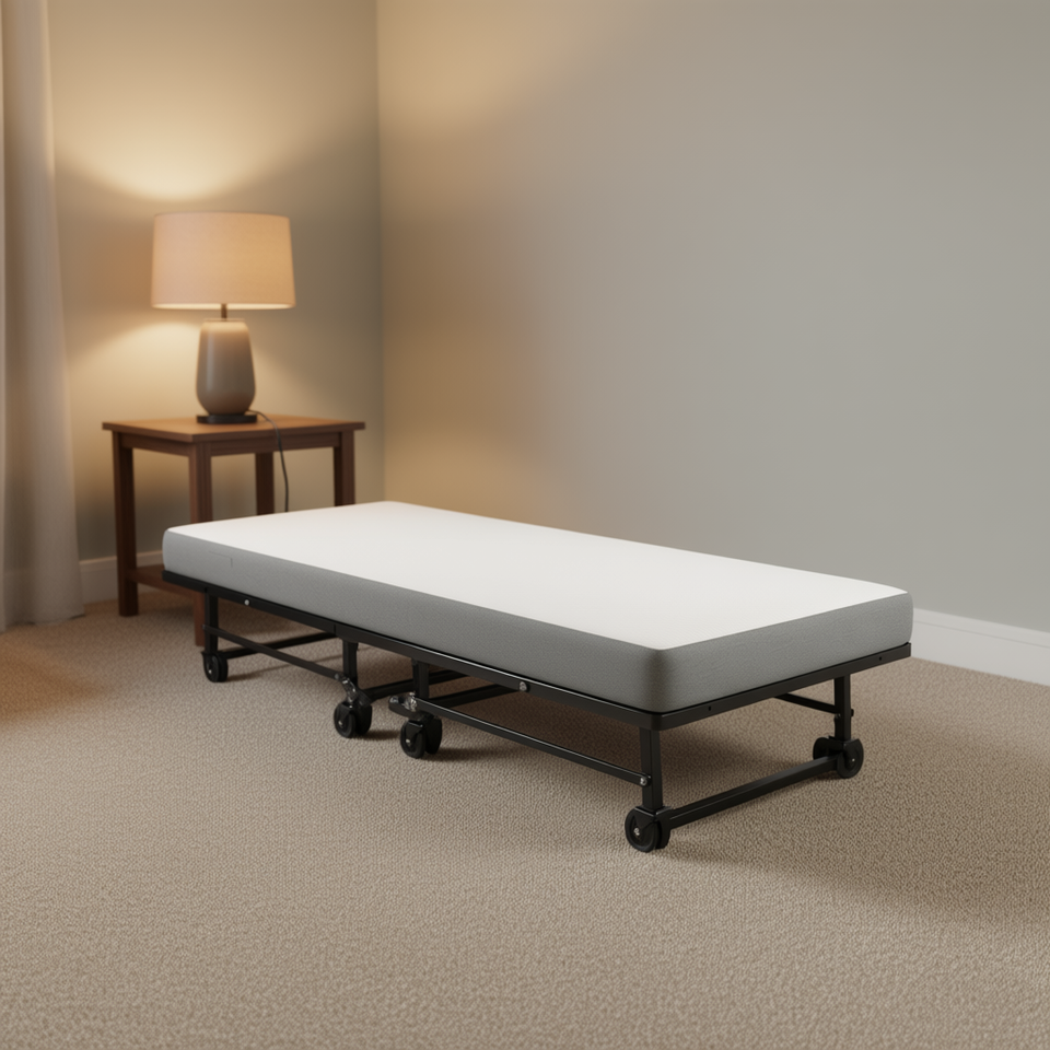 Metal Folding Bed Frame with Foam Mattress 4 Castors Sofa Bed Easy Storage Living Room Furniture